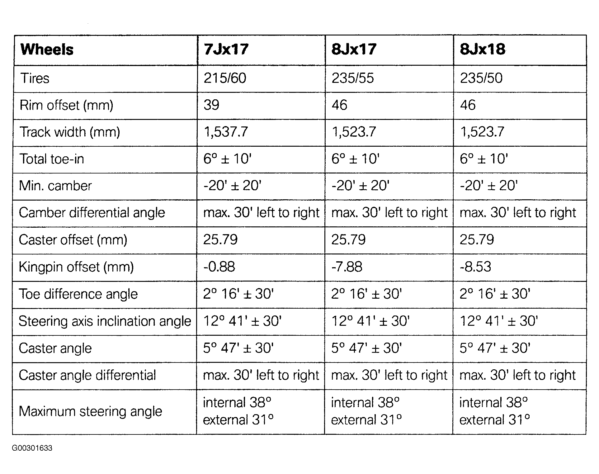 For wheel alignment specifications, see