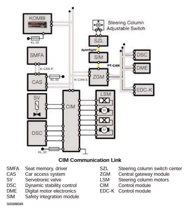 The CIM is linked to the K-CAN S Bus for communication with other control modules. The ZGM provides the gateway for diagnostic communication. See Fig 2.