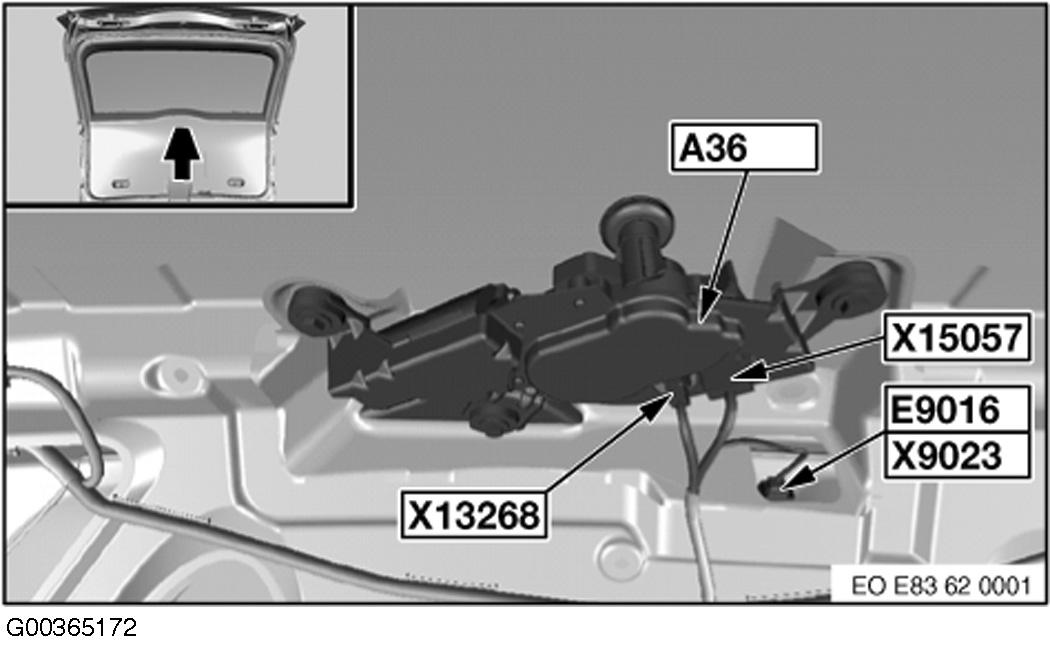 | Intermittent Wipe/Wash Control Module (Rear) (A36) | In liftgate. See Figure. |