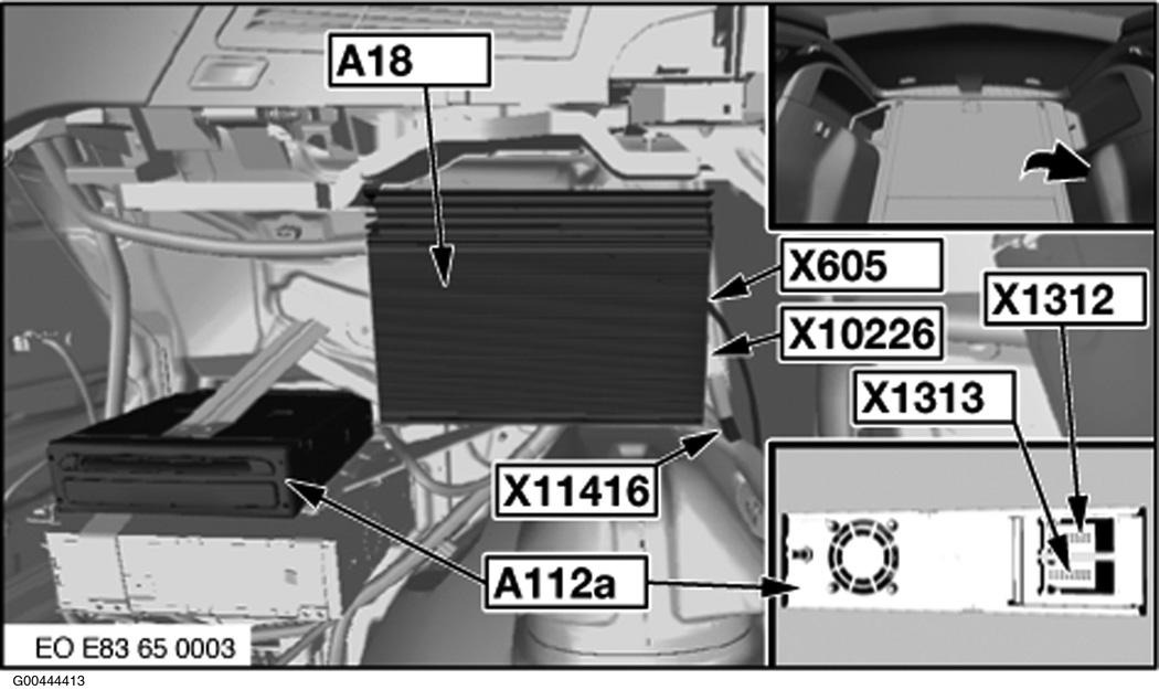 | Navigation System (A112a) | Left side of rear compartment. See Figure. |