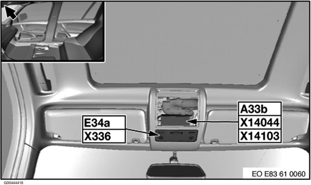 | Panorama Glass Sunroof Module (A336) | In overhead console. See Figure. |