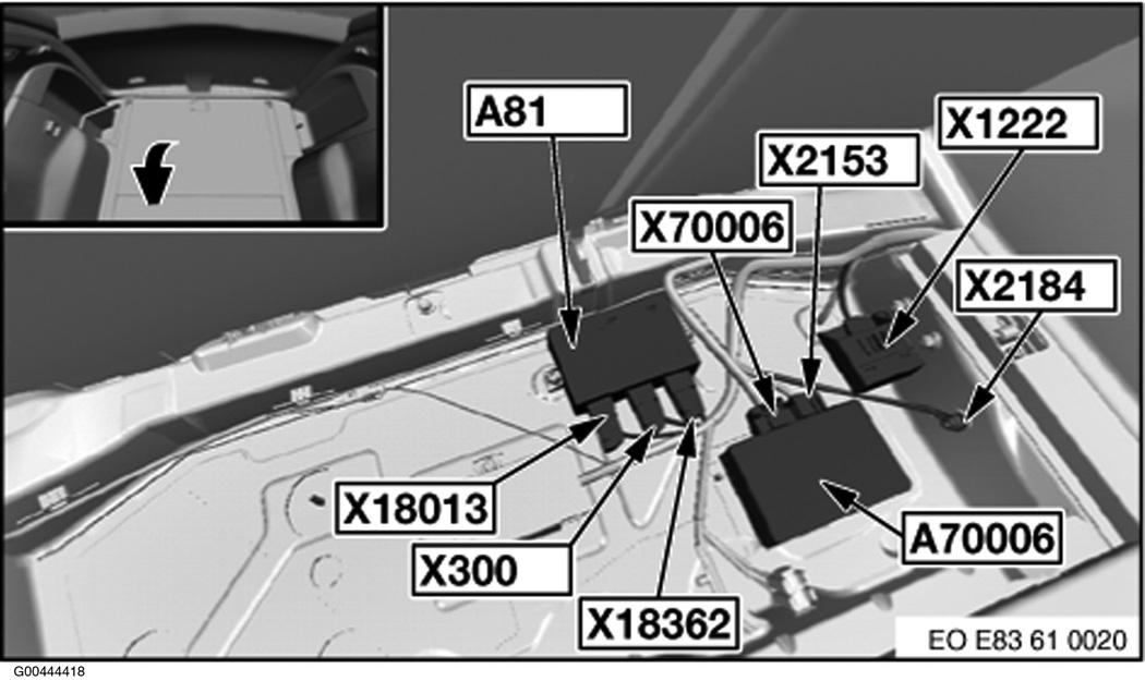 | Park Distance Control (PDC) (A81a) | Center of rear compartment floor board. See Figure. |