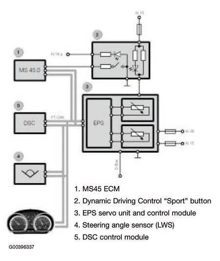 When the Dynamic Driving Control function is selected with the "Sport" button, the engine management system directs the request signal via the PT-CAN Bus to the EPS Control Module. The EPS Control Module switches to sporty vehicle handling. This provides higher steering and holding forces. See Fig 1 .