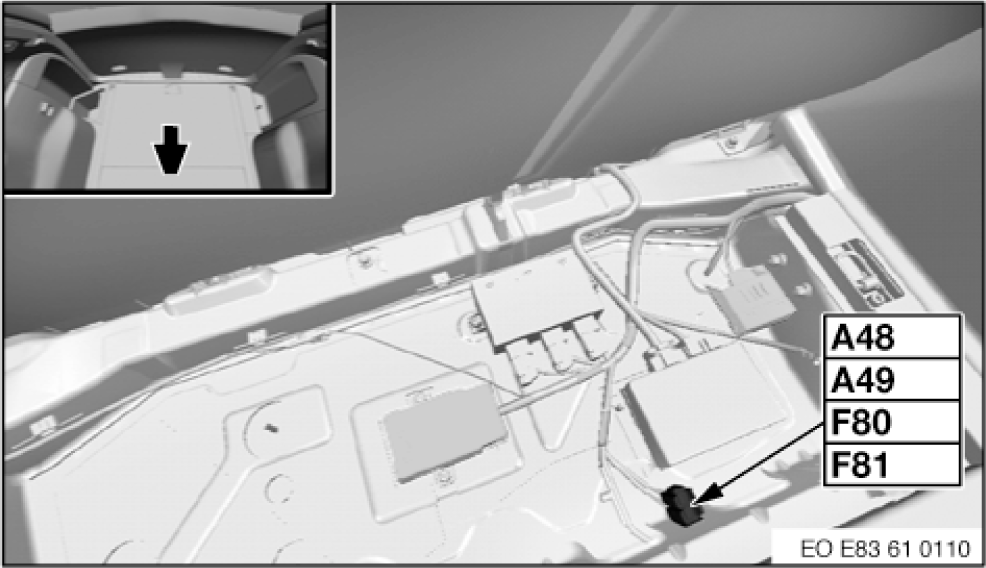 | Fuse Box (A400) | In right side of rear compartment floor board. See Figure. |
