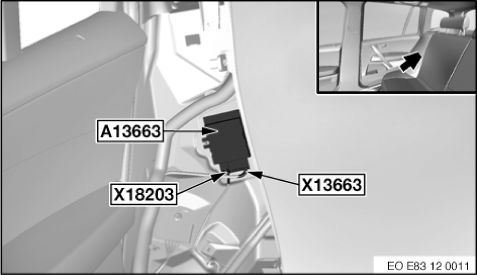 | Fuel-Pump Control (EKPS) (A13663) | Right "C" pillar. See Figure. |