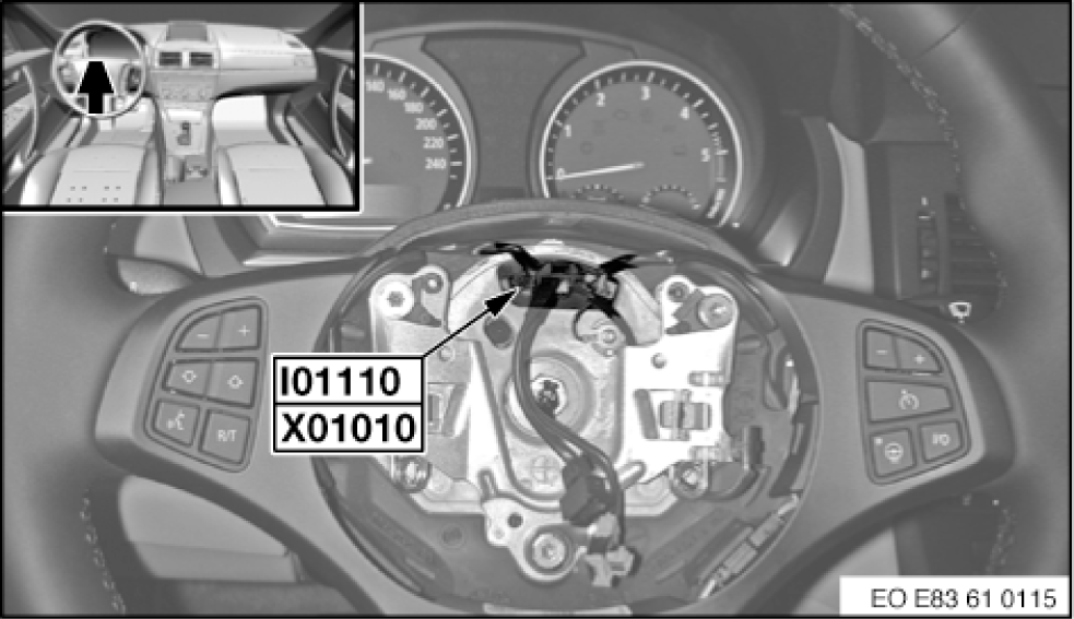 | Steering Wheel Heating Control Unit (I01110) | Center of steering wheel. See Figure. |