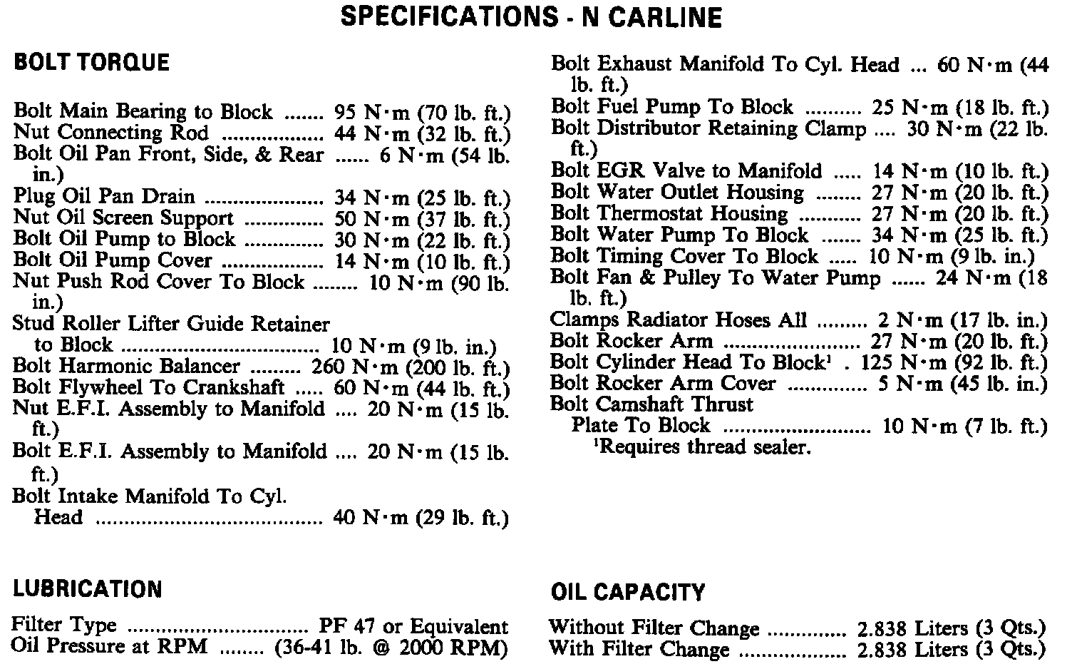 Torque & Engine Specifications: