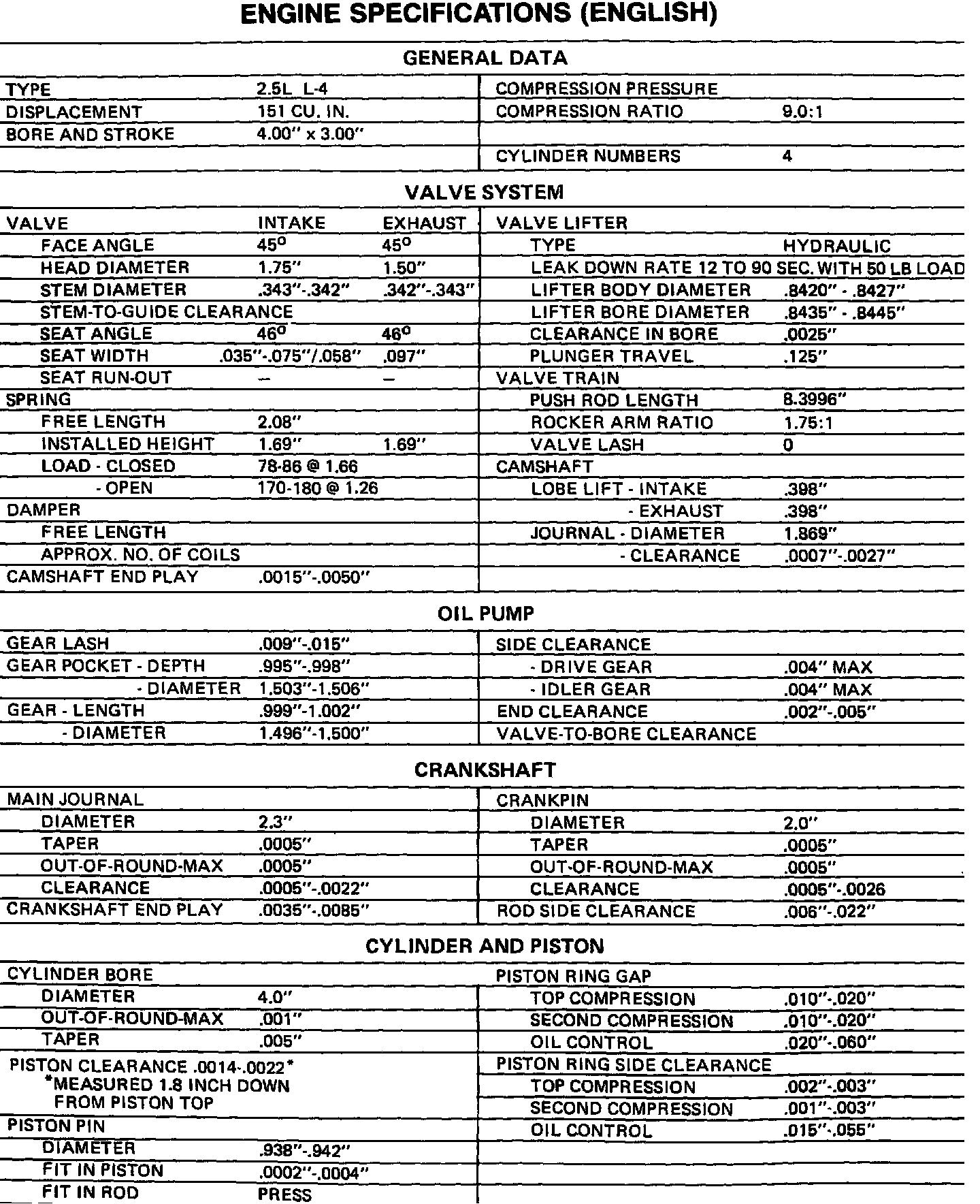 Continued Engine Specifications: