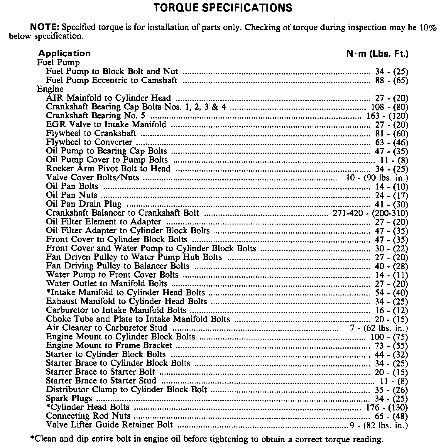 Torque Specifications: