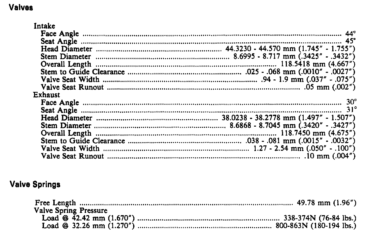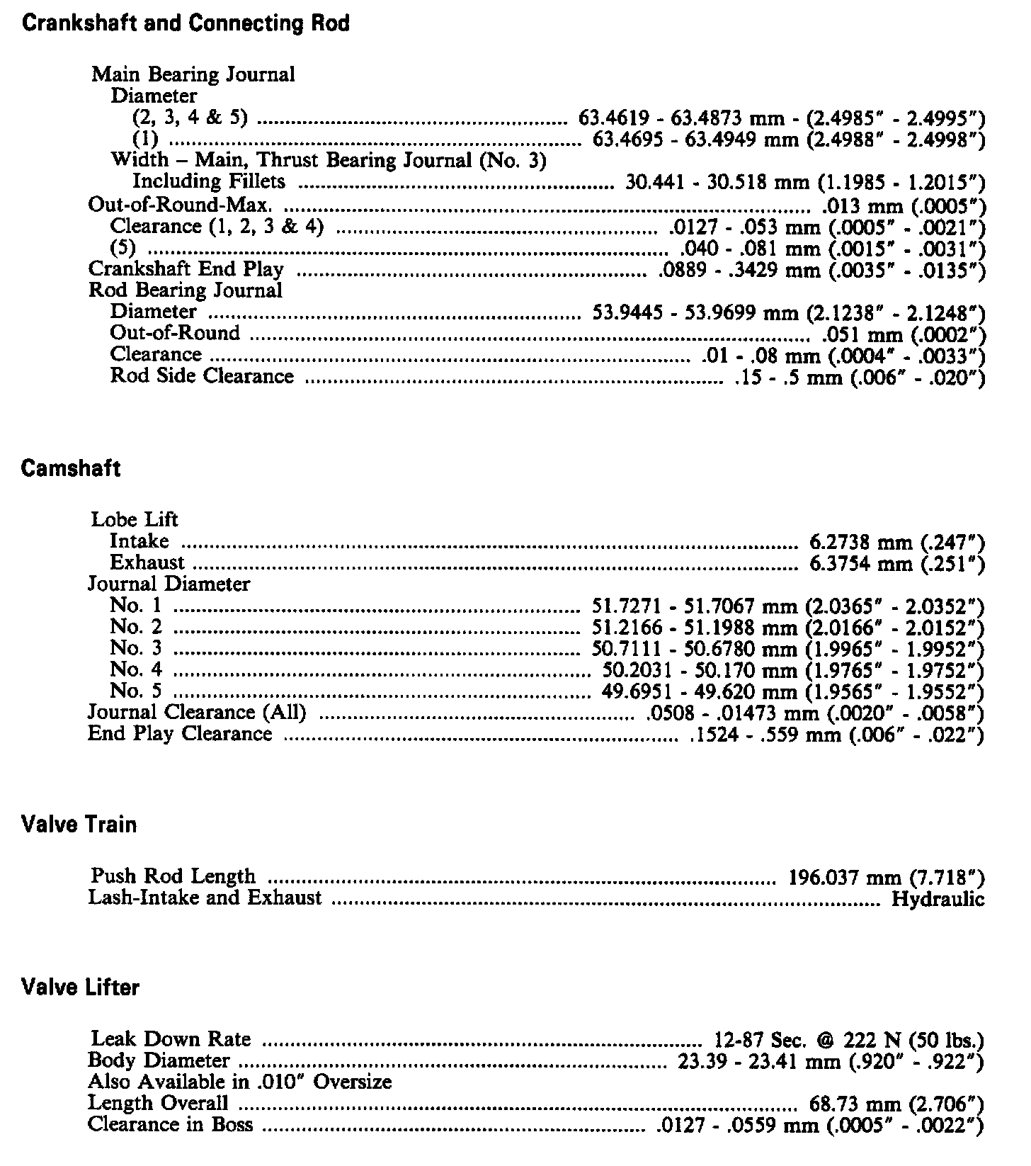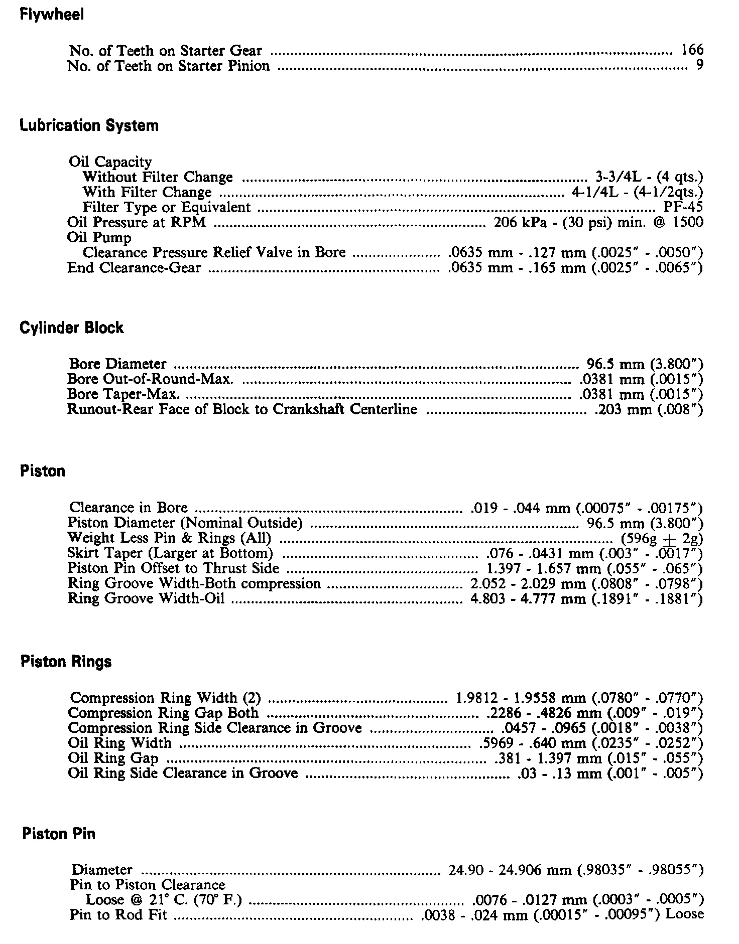 Continued Engine Specifications: