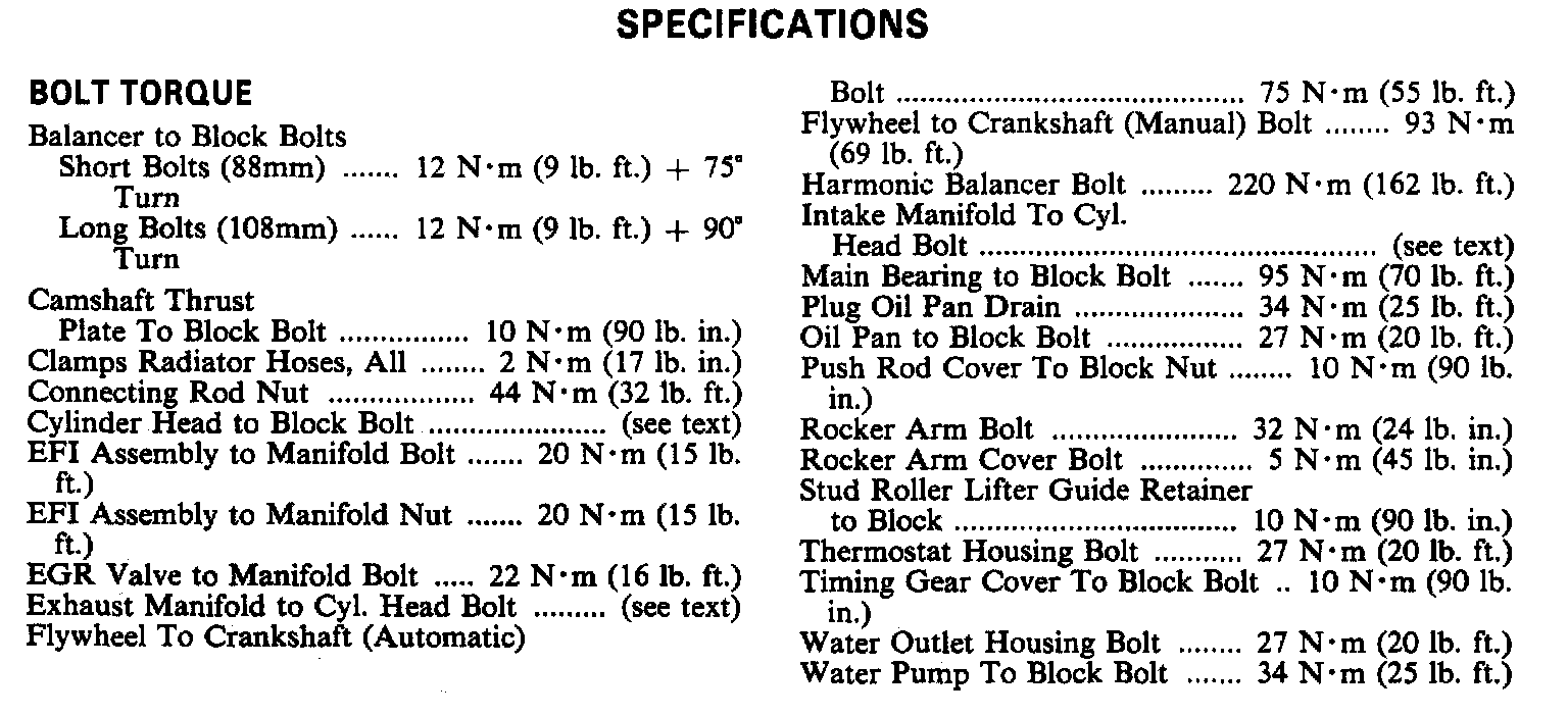 Torque Specifications: