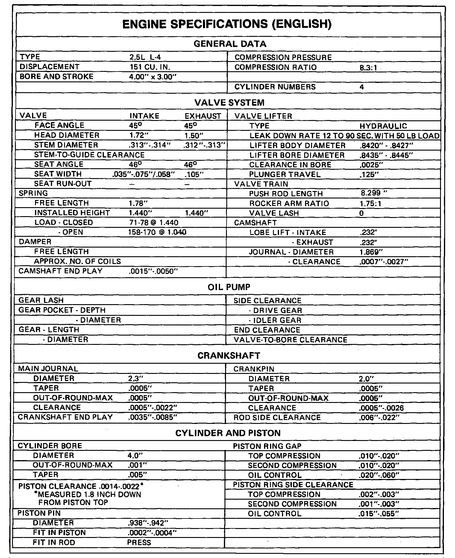 Engine Specifications:
