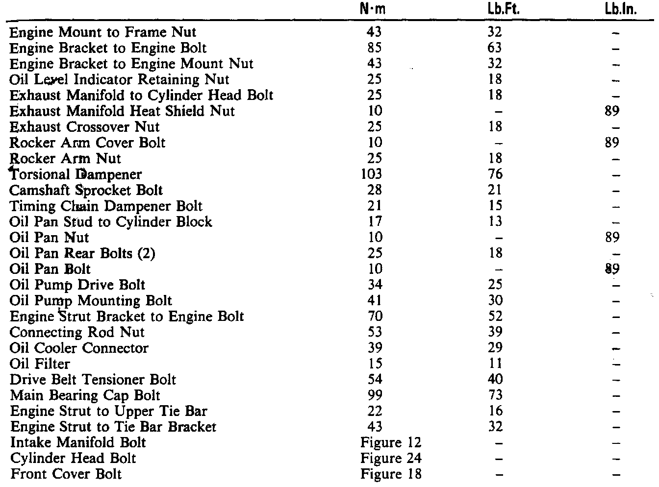 Torque Specifications: