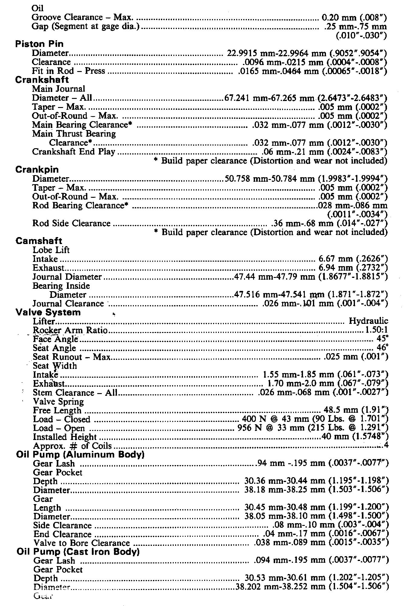 Engine Specifications:
