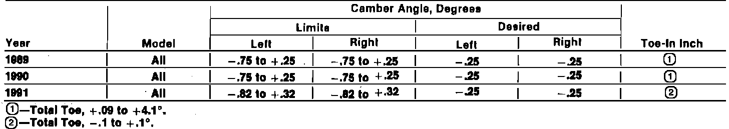 Rear Wheel Alignment Specifications: