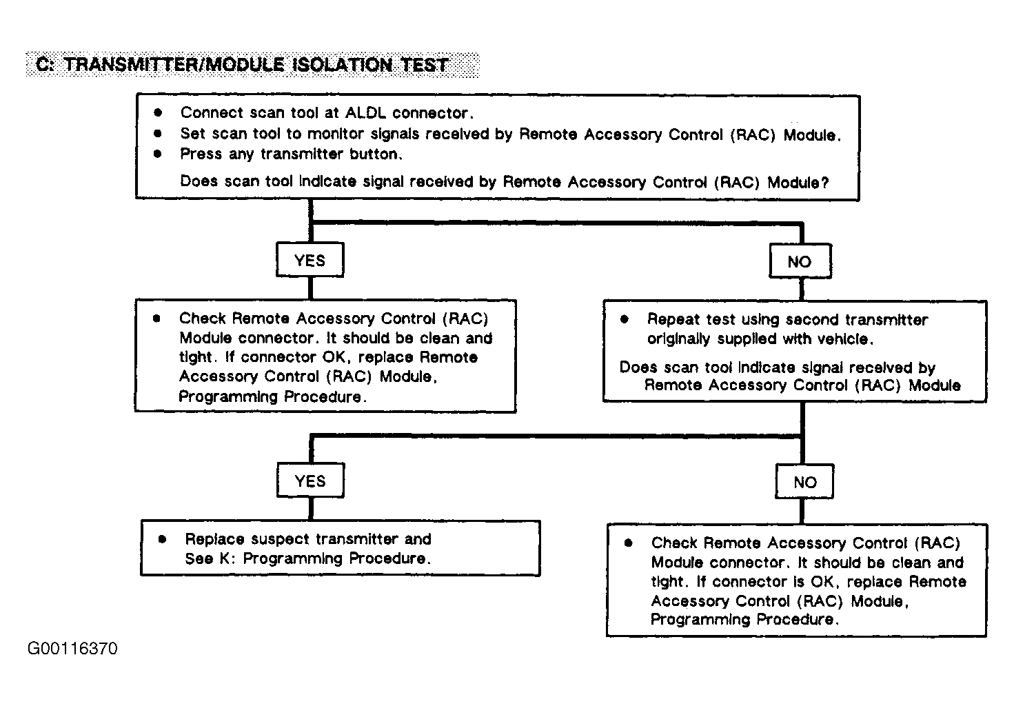 To perform Transmitter/Module Isolation testing, refer to illustration. See