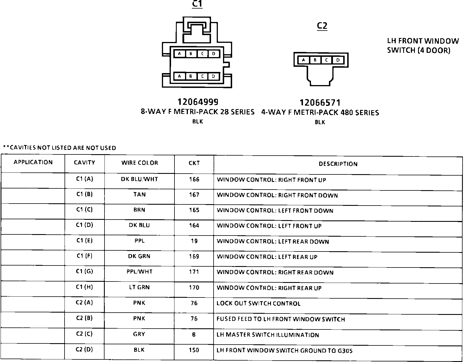 LH Front Window Switch (4 Door) Connector Face: