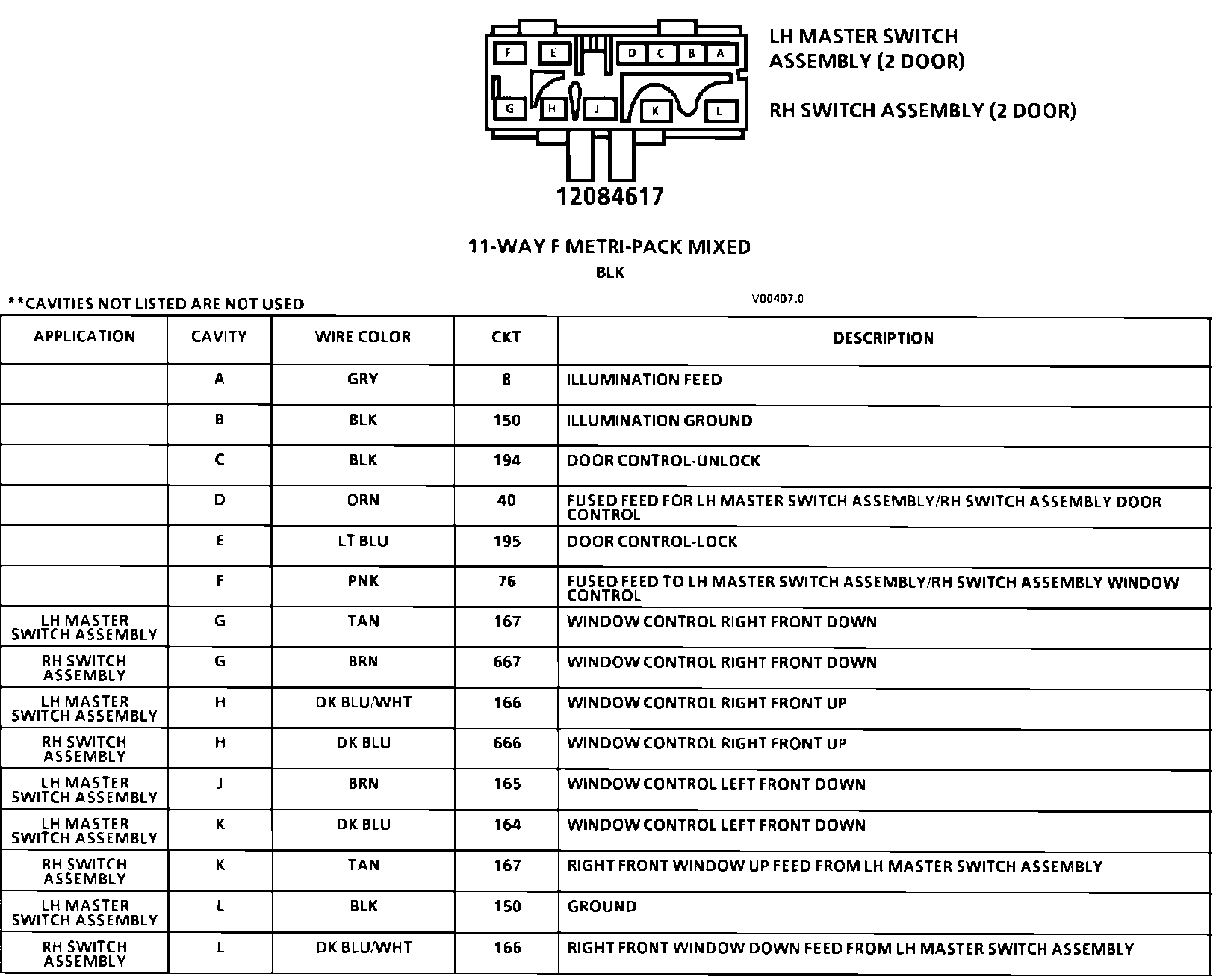 LH And RH Switch Assembly (2 Door) Connector Face: