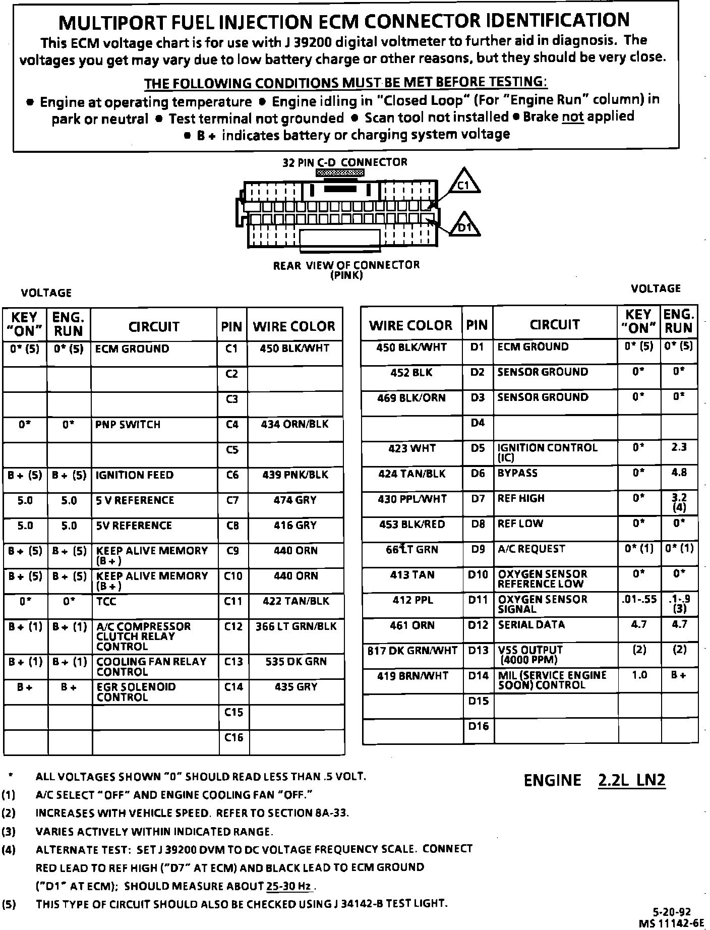 ECM Connector Pin Voltage Chart: