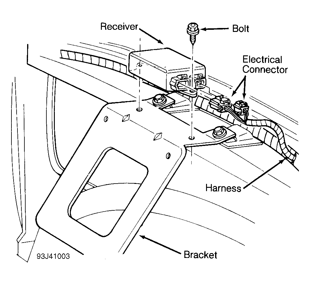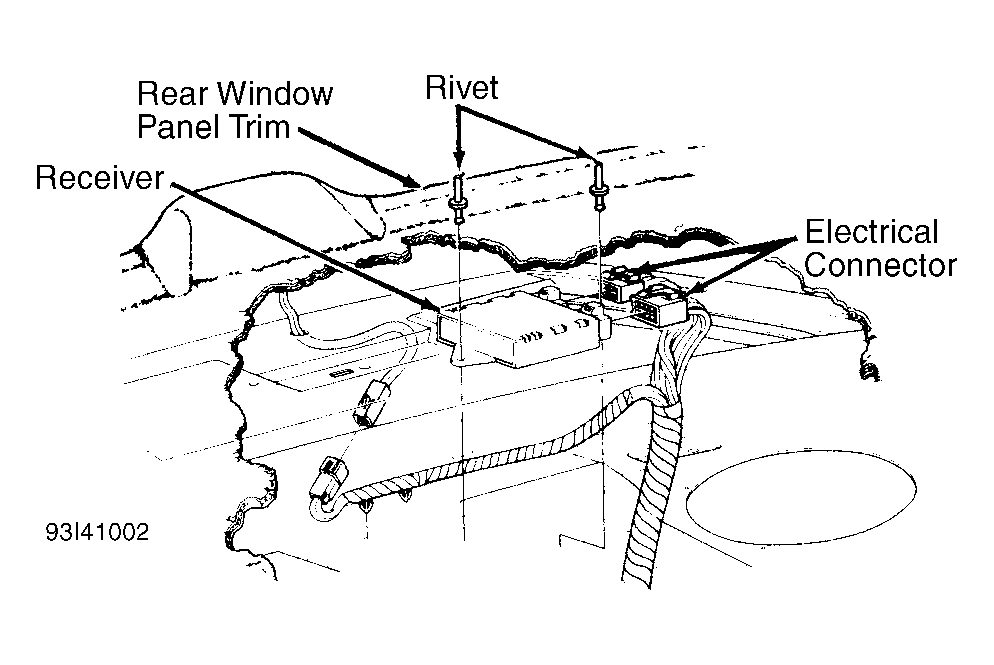 - On sedan, remove rivets attaching receiver assembly to rear window panel assembly. On wagon, remove bolts/screws attaching receiver assembly to bracket. On all models, if system programming is necessary, see RECEIVER PROGRAMMING