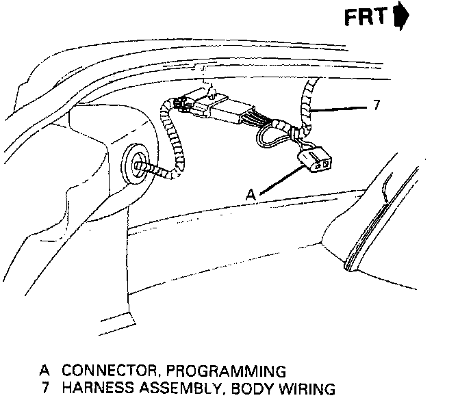 1. Reposition rear compartment trim assembly to access the programming connector located at the left of the rear compartment.