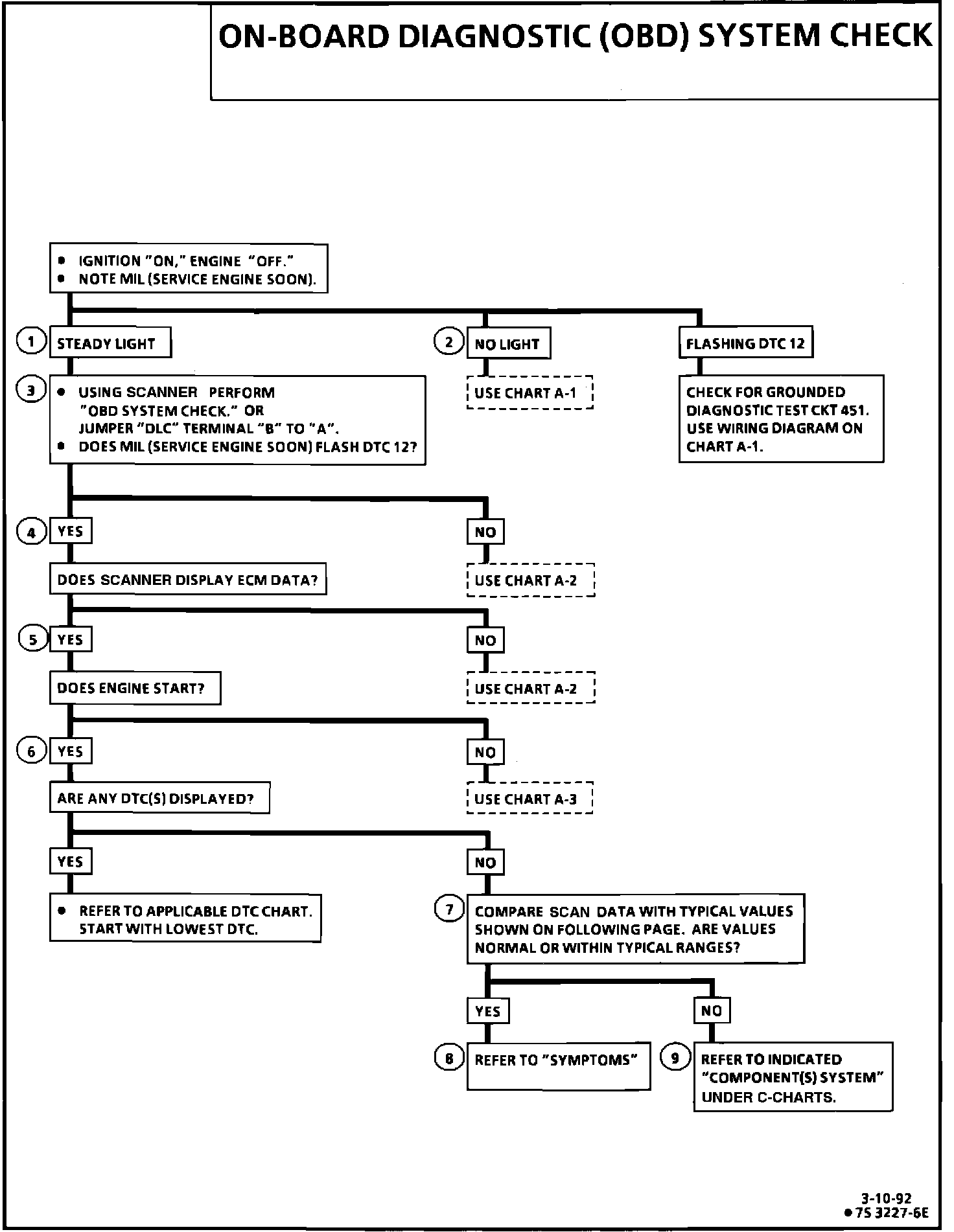The On-Board Diagnostic (OBD) system check is an organized approach to identifying a problem created by an electronic engine control system malfunction. It must be the starting point for any driveability complaint diagnosis, because it directs the service technician to the next logical step in diagnosing the complaint. Understanding the chart and using it correctly will reduce diagnostic time and prevent the unnecessary replacement of good parts.