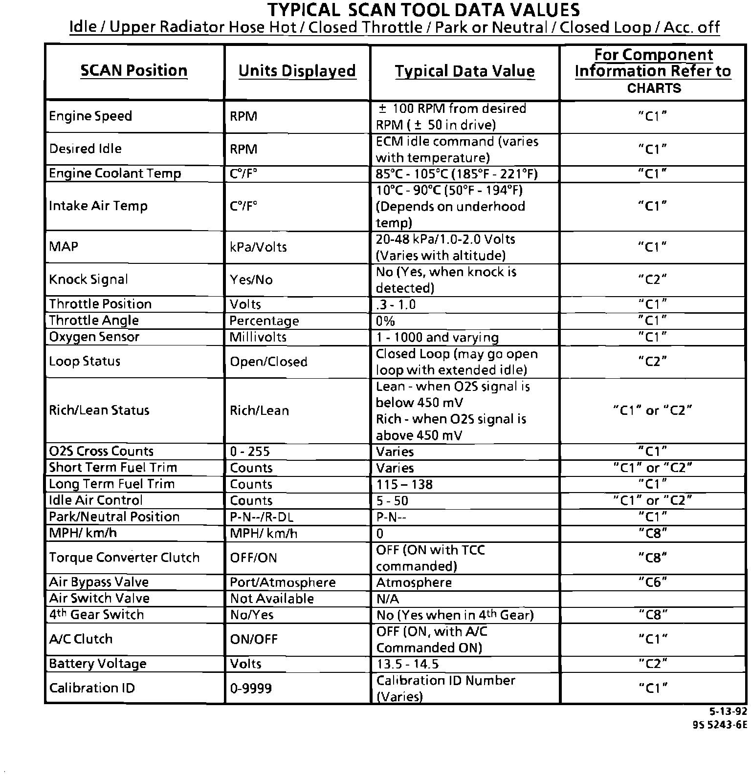 7. Comparison of actual control system data with the typical values is a quick check to determine if any parameter is not within limits. Keep in mind that a base engine problem (i.e., advanced cam timing) may substantially alter sensor values.