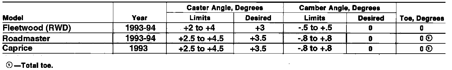 Front Wheel Alignment Specifications: