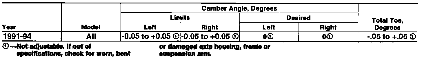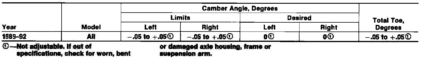 Rear Wheel Alignment Specifications: