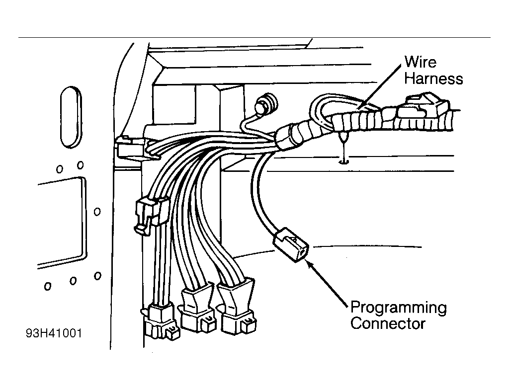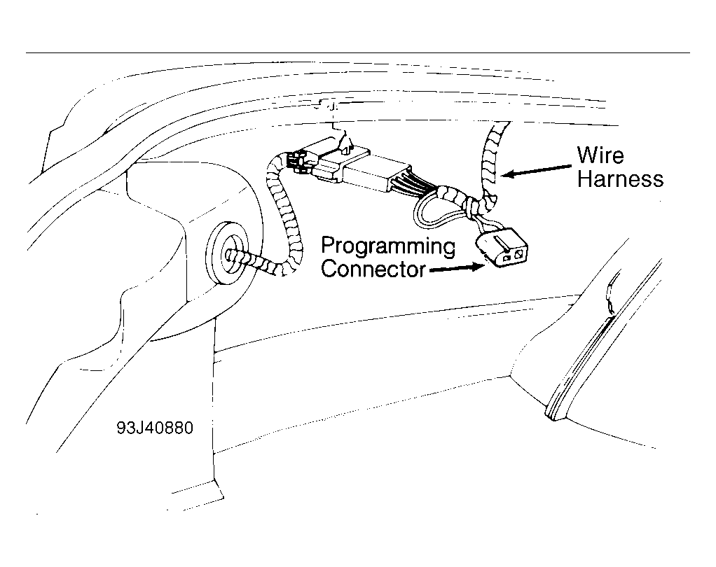 - Disconnect programming connector. System will not operate unless ground connection jumper wire is removed. Ensure transmitter is operating properly. On sedan, reposition trunk trim assembly.