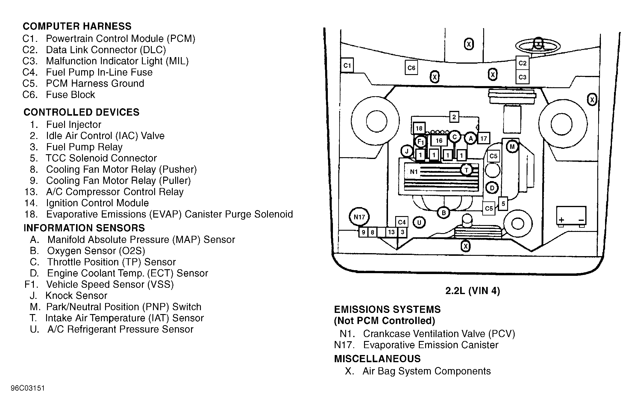| Fuse Block (2.2L VIN 4) | Behind right side of dash, to left of glove box. See Figure . |