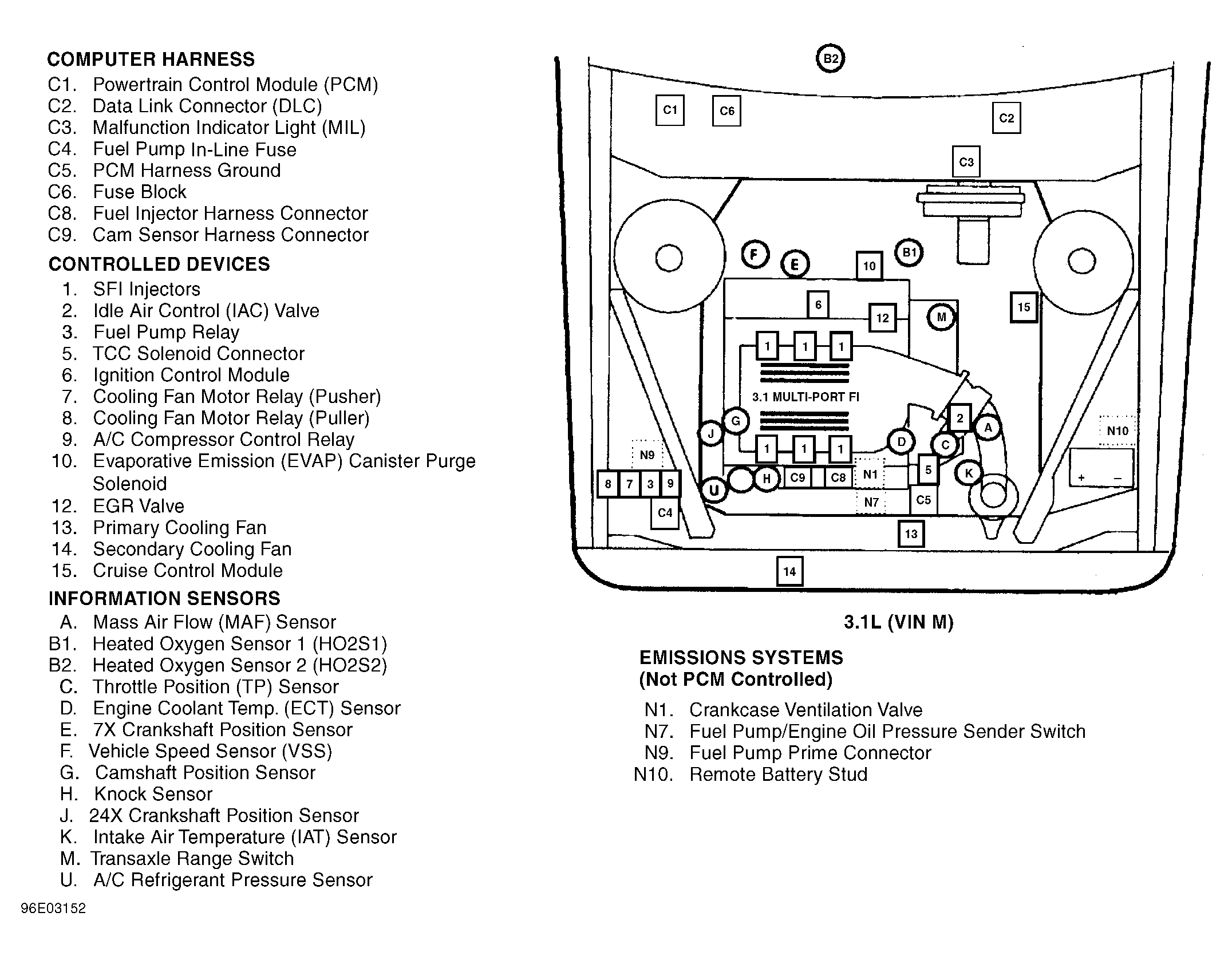 | Fuse Block (3.1L VIN M) | Behind right side of dash, to left of glove box. See Figure . |
