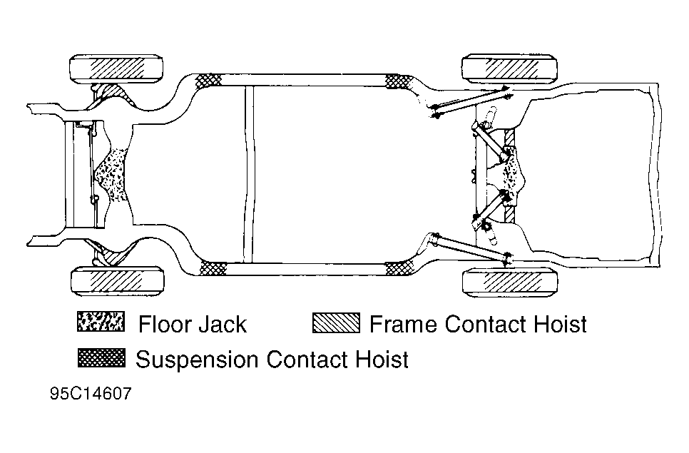 Hoist adapters must contact vehicle in specified areas. See Fig 1 . Adapters must be positioned to distribute load and support vehicle in a stable manner. DO NOT allow lift pads to contact exhaust system components.