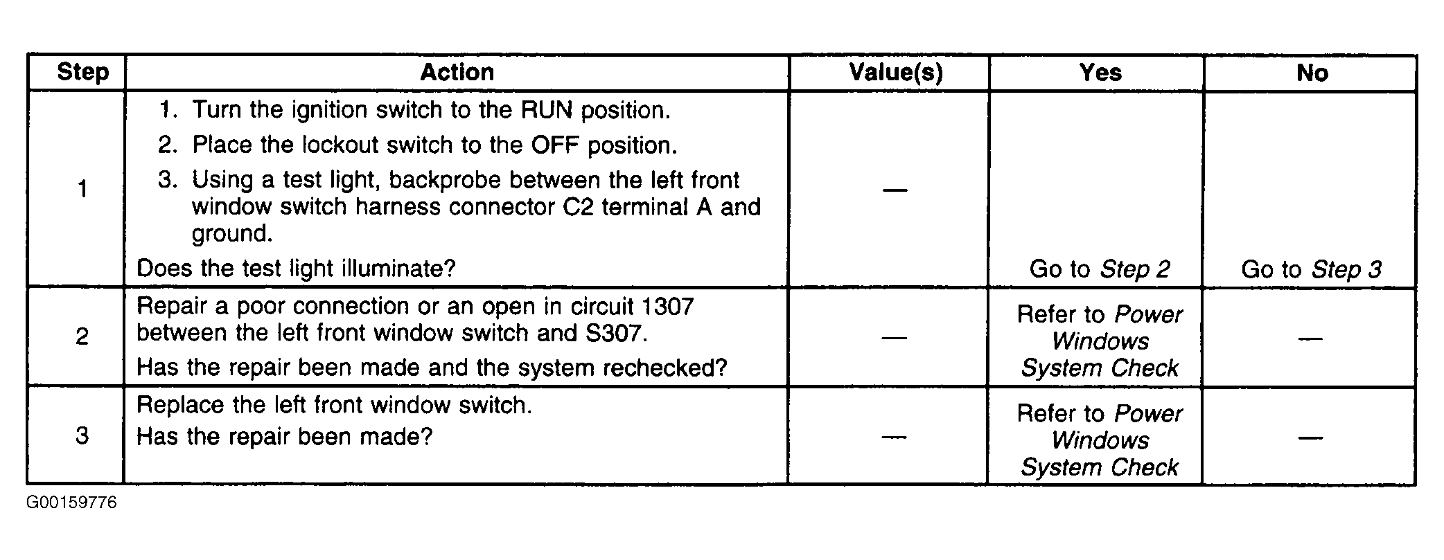 Test B: Power Windows Inoperative