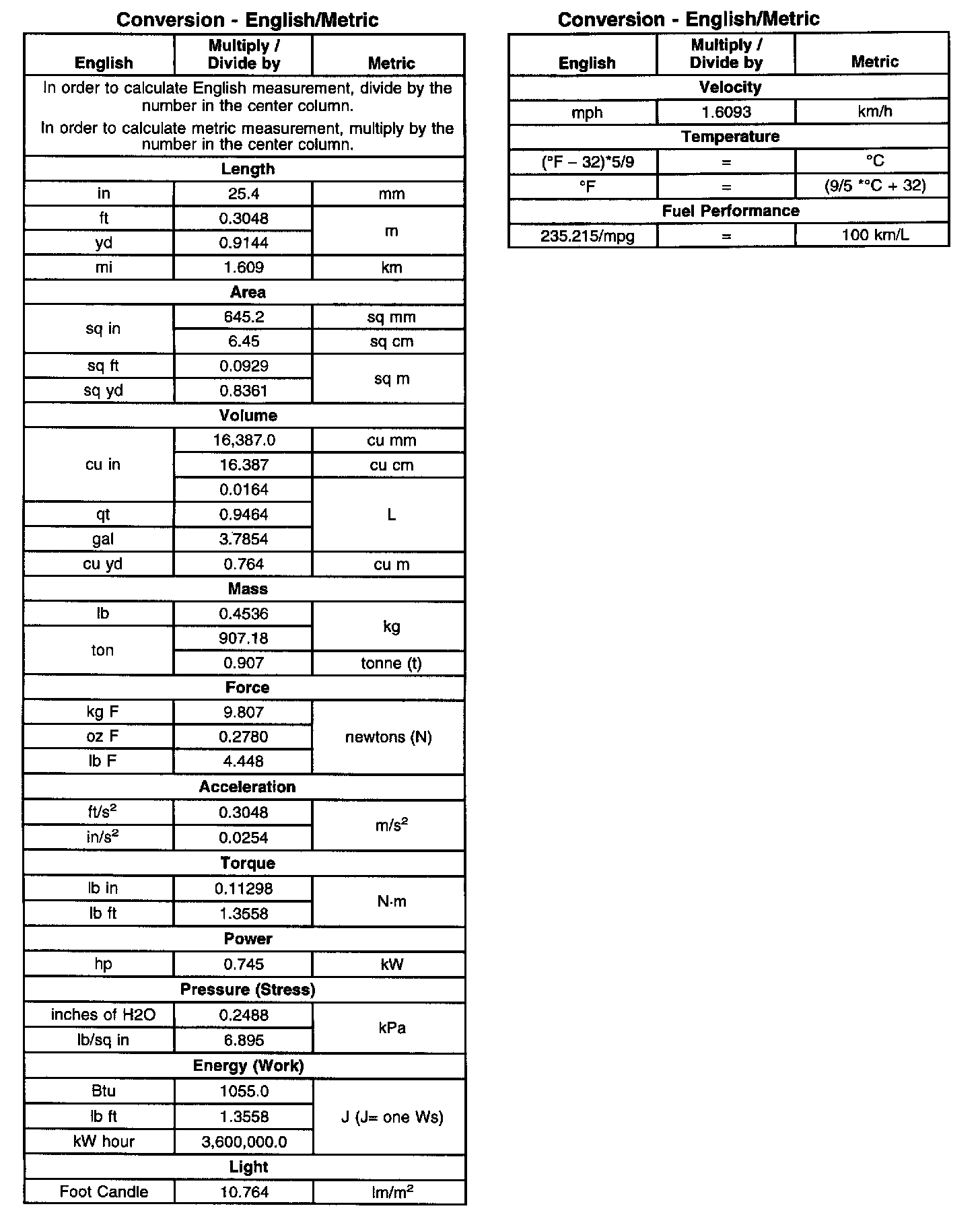 Conversion - English/Metric