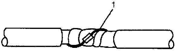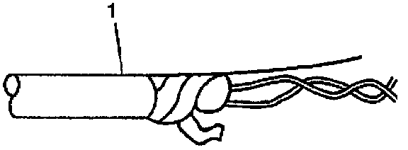 1. Remove the outer jacket (1). Use care not to cut into the drain wire of the mylar tape.