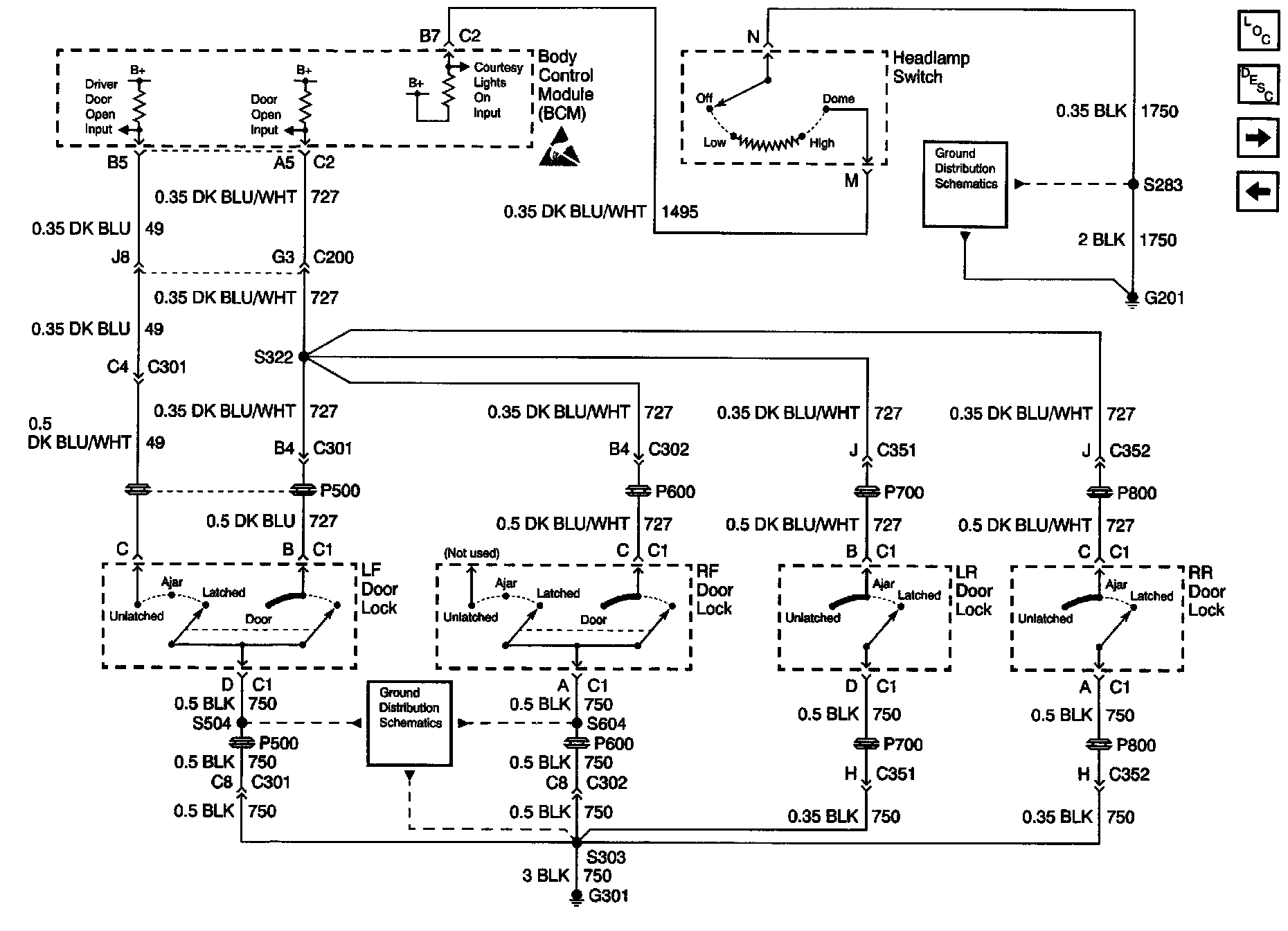 Body Control Module Schematics : Door Lock Inputs And Headlamp Switch Input: