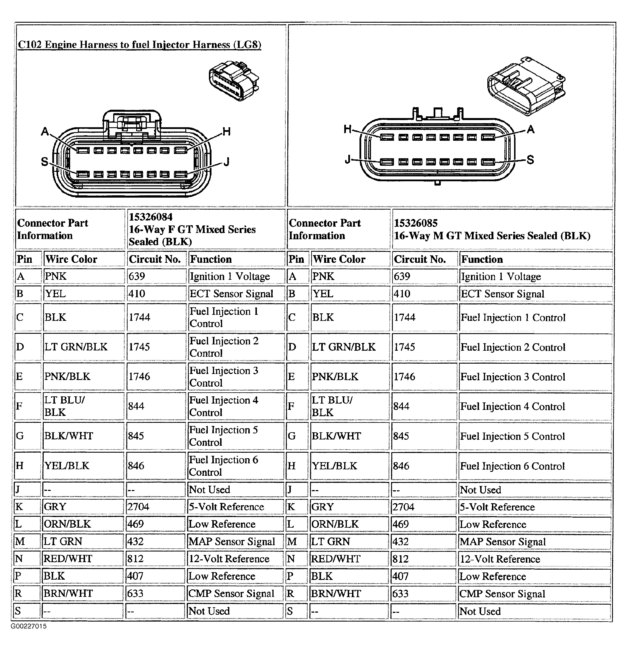 - Disconnect the fuel injector multi-way harness connector. Using a DVOM, measure the resistance of each fuel injector between the ignition feed circuit and the fuel injector control circuit, at the multi-way harness connector. See Fig 1. Record each fuel injector value. Subtract the lowest resistance value from the highest resistance value. Is the difference equal to, or less than 3 ohms? If yes, go to FUEL INJECTOR BALANCE TEST WITH SPECIAL TOOL or FUEL INJECTOR BALANCE TEST WITH TECH 2