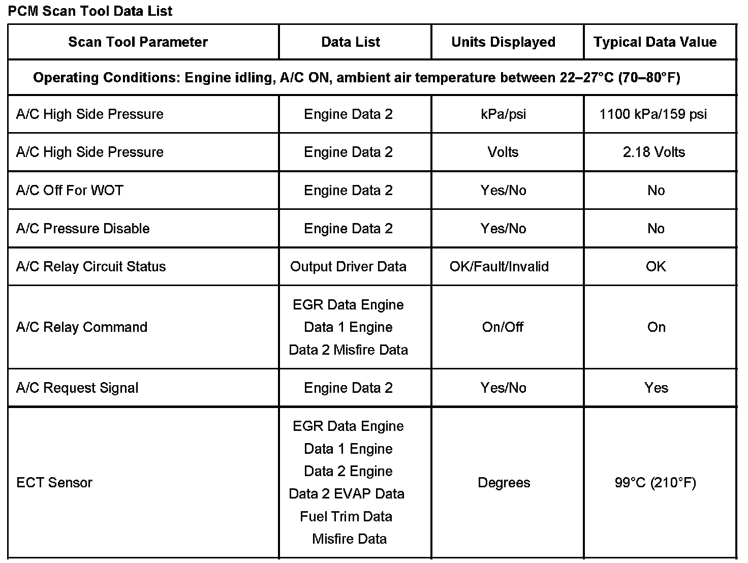 PCM Scan Tool Data List: