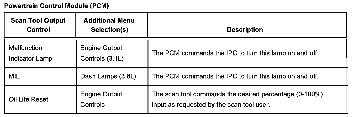 Scan Tool Output Controls - Powertrain Control Module (PCM)