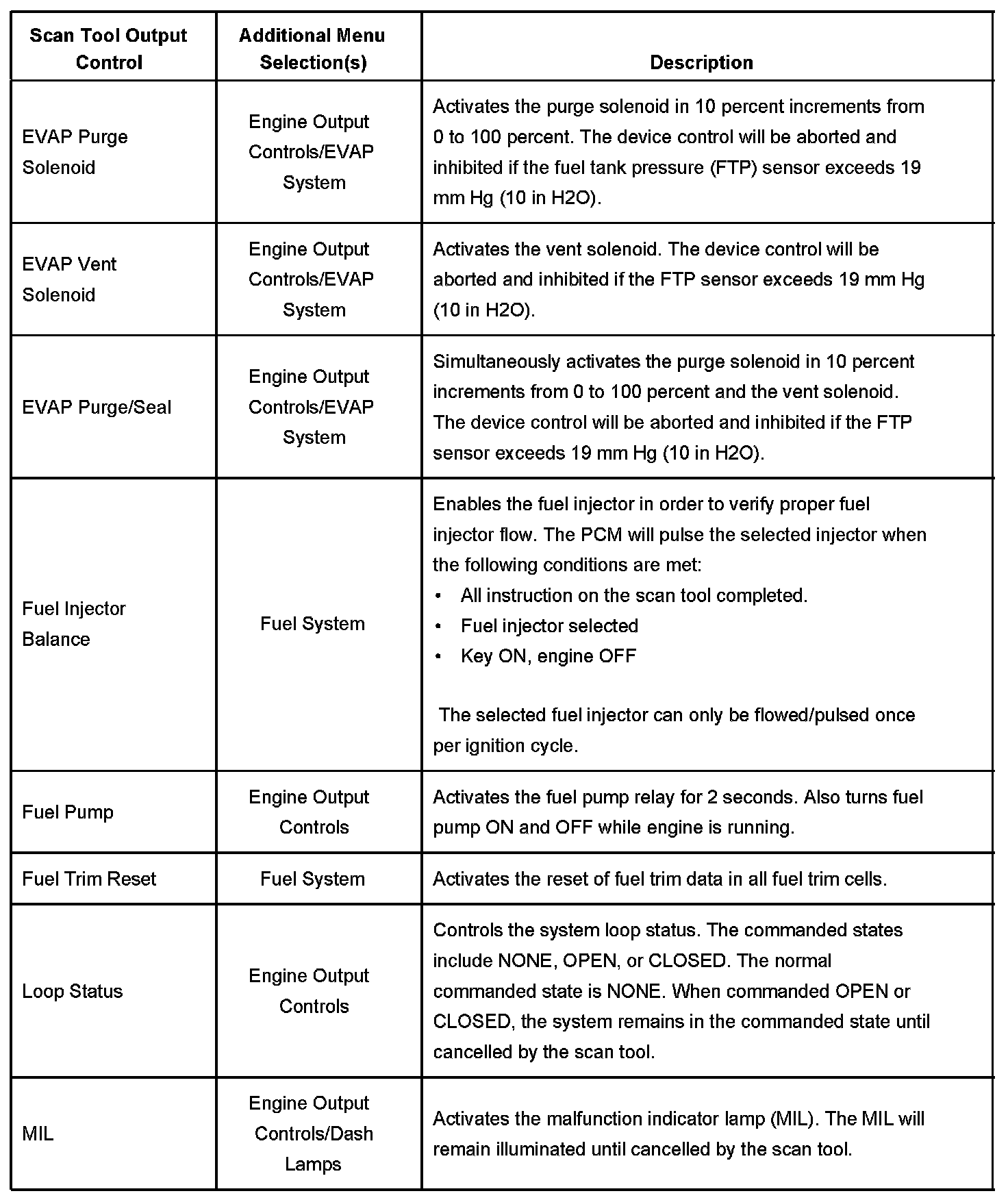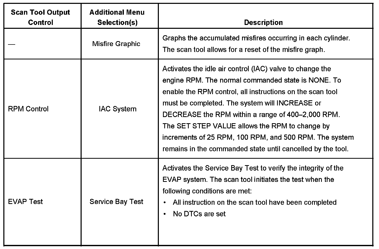 Scan Tool Output Controls