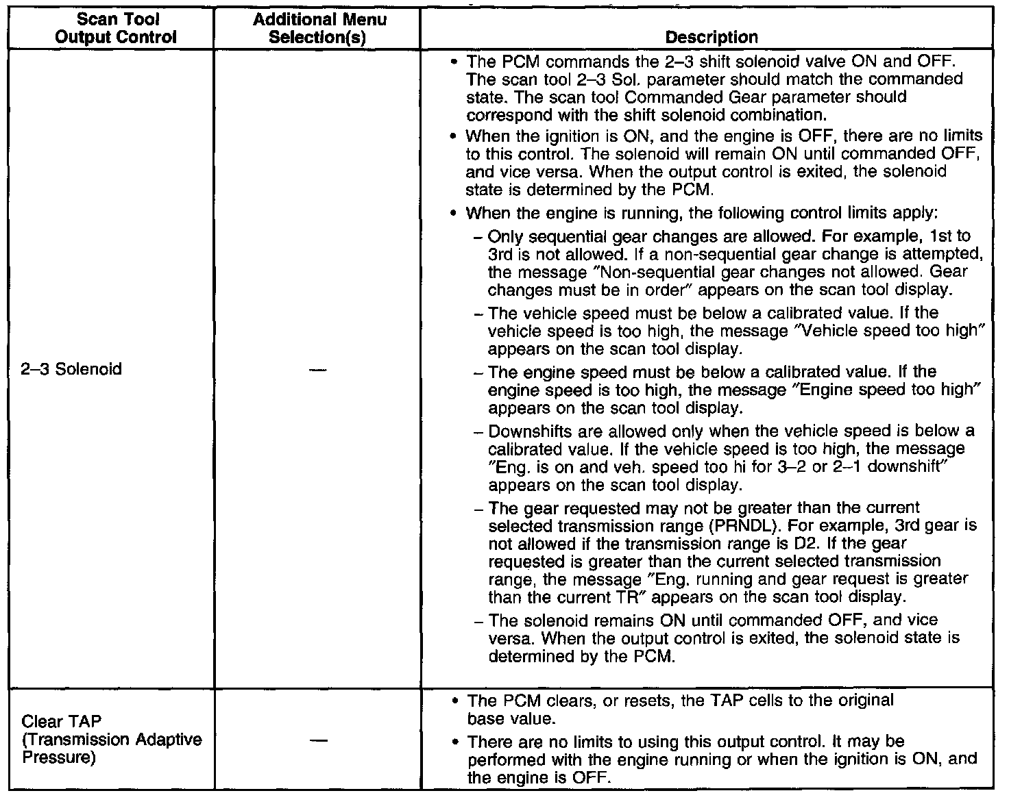 Scan Tool Output Controls