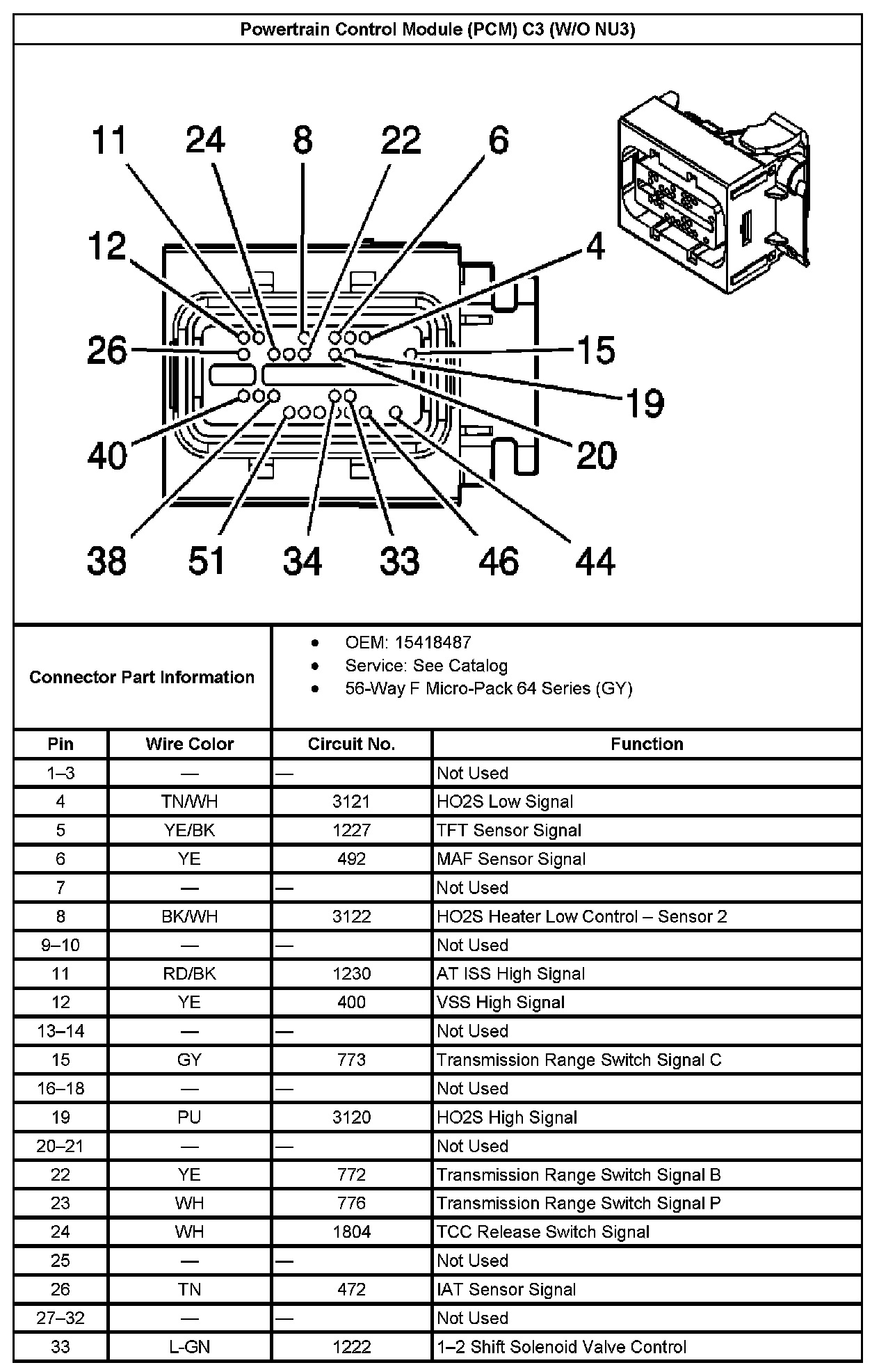 Powertrain Control Module (PCM) C3 (Without RPO Code NU3) Part 1: