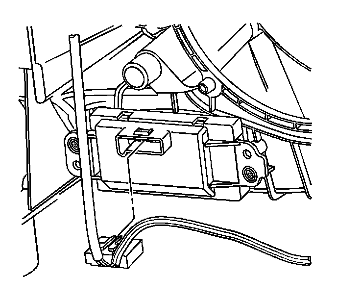 2. Install the 2 new screws in the pre-drilled holes to the side of the heat stakes in the blower control module and the HVAC module assembly.