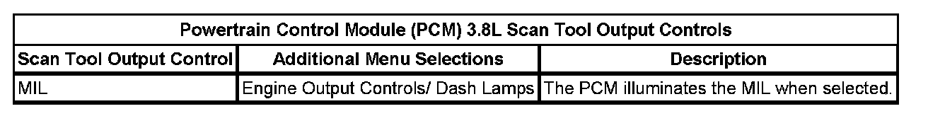 Powertrain Control Module (PCM) Scan Tool Output Controls: