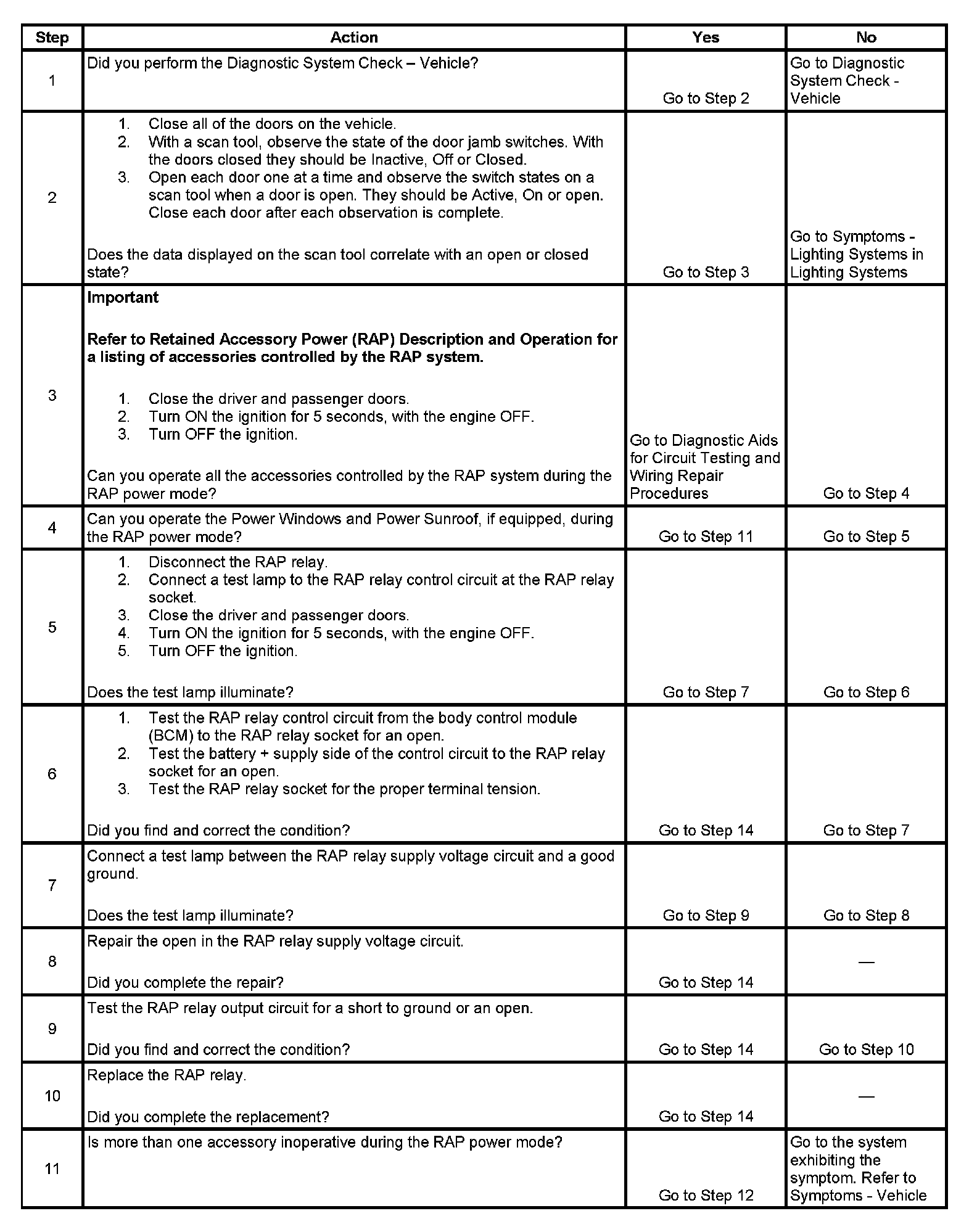 Retained Accessory Power (RAP) Inoperative