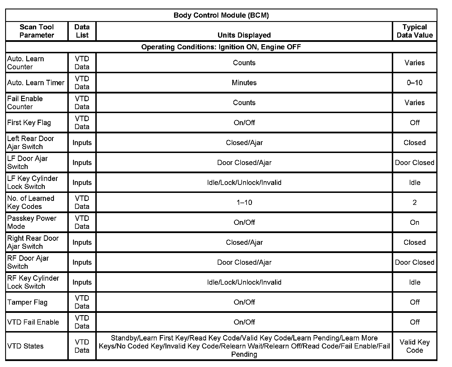 Scan Tool Data List - Antitheft System