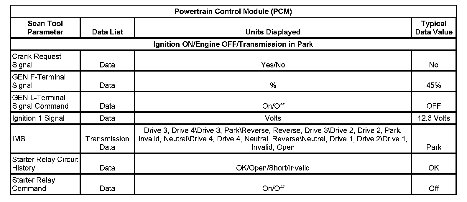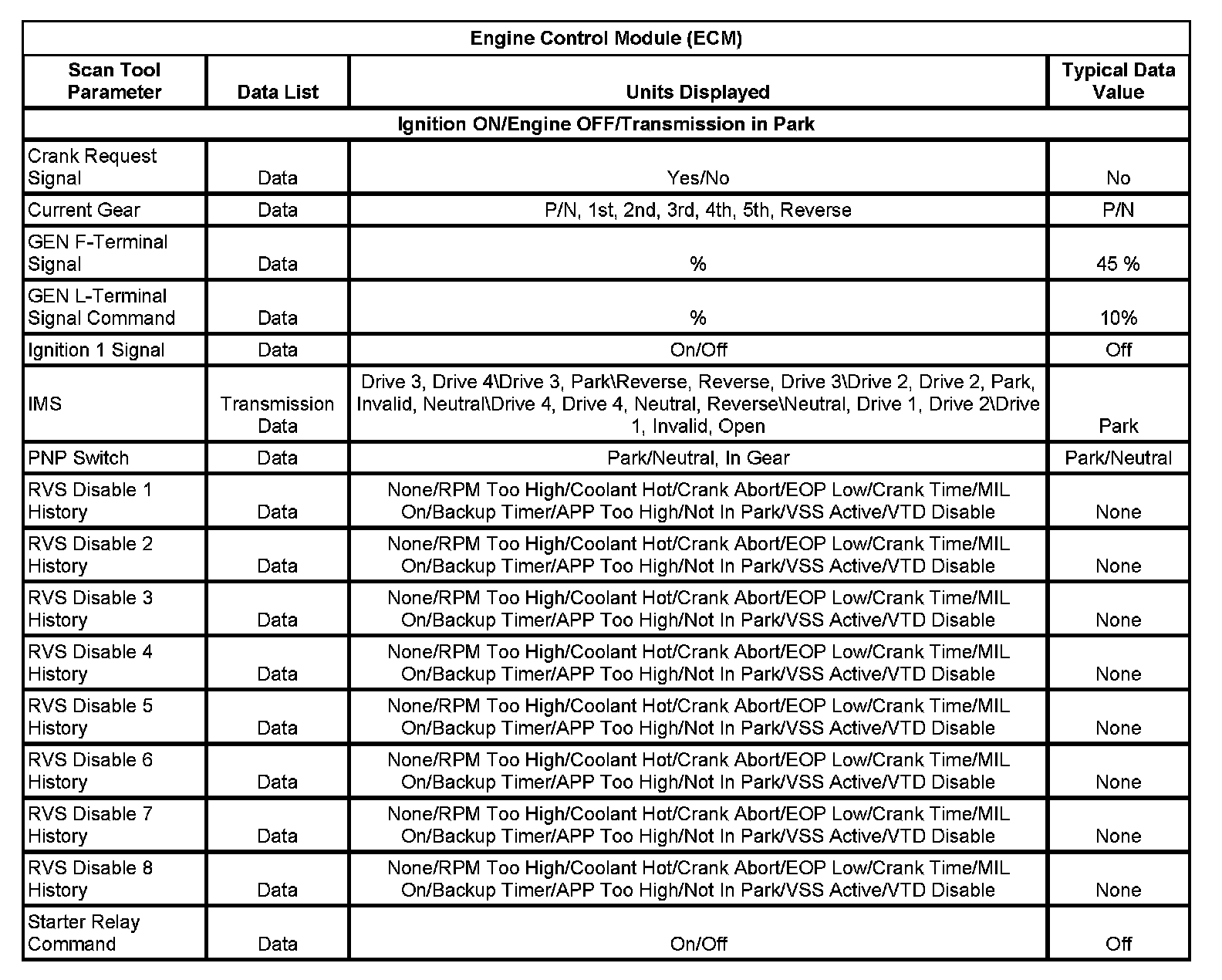 Normal Scan Tool Data Values
