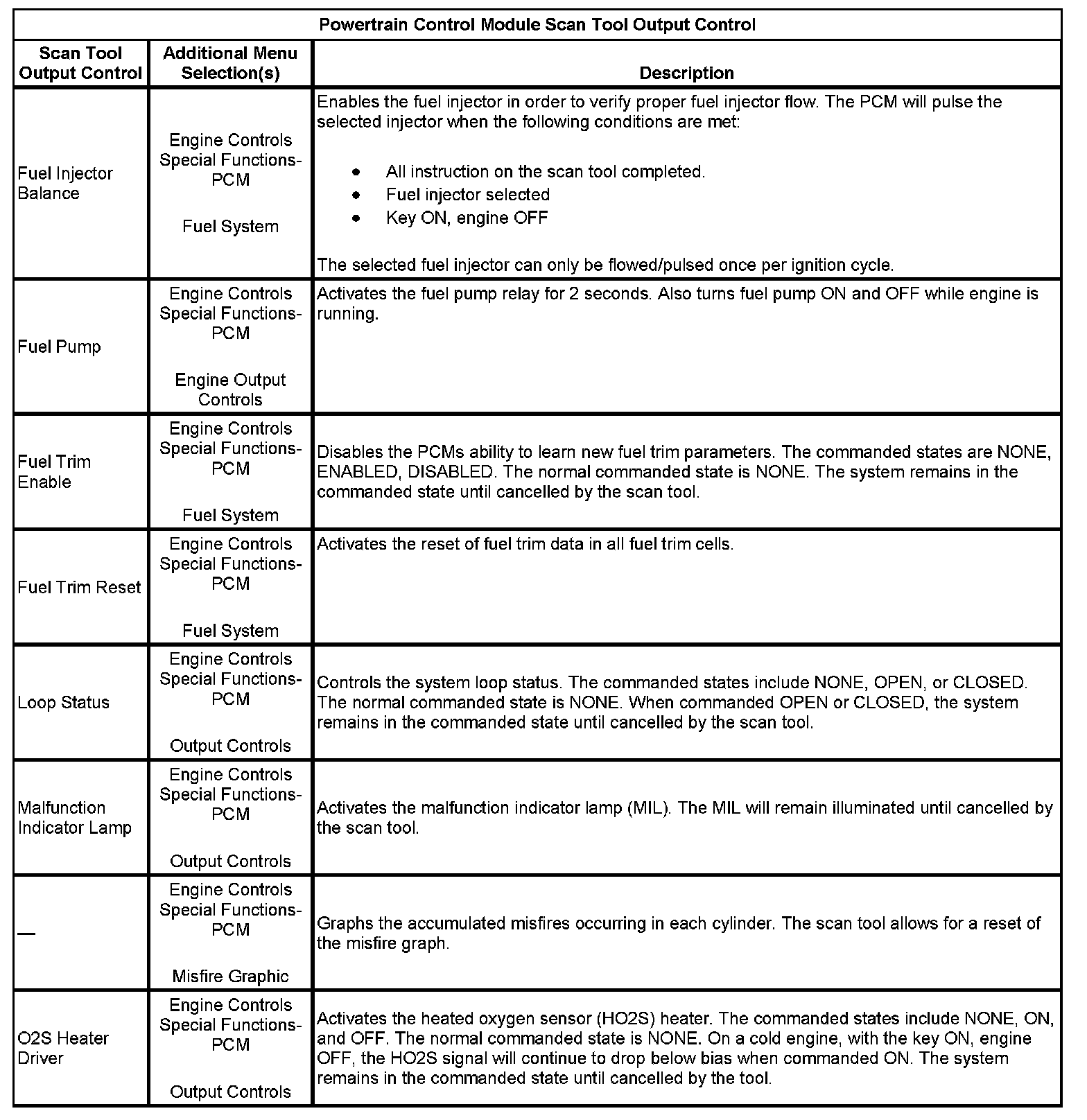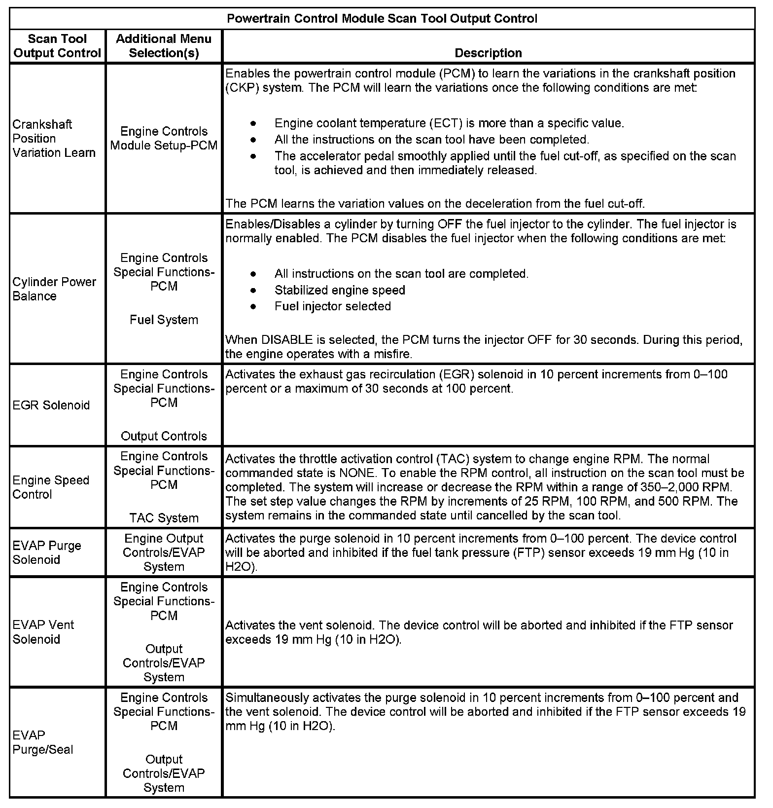 Powertrain Control Module Scan Tool Output Control (Part 2):