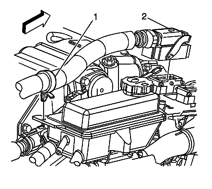 2. Simultaneously rotate the ECM connector clamp lever and depress the lock slide (2).